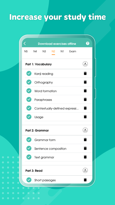 日本語能力試験の総合対策が可能なアプリ。個々の学習進度に合わせたカスタムロードマップが魅力です。インターネットがなくても使えるオフライン学習と、定期的な学習をうながす通知機能で学習を習慣化。