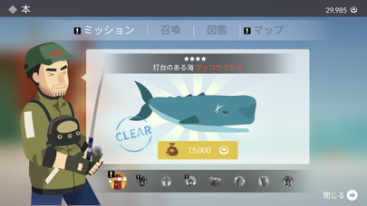- 竿や糸を強化してより大物を狙う。最終的にはクジラが釣れるかも