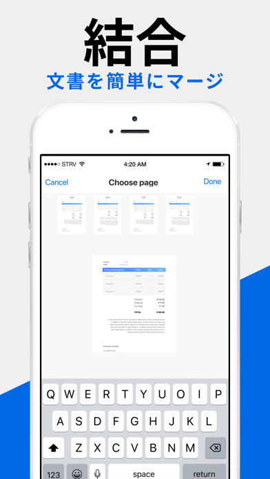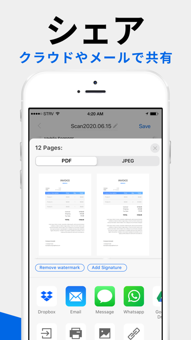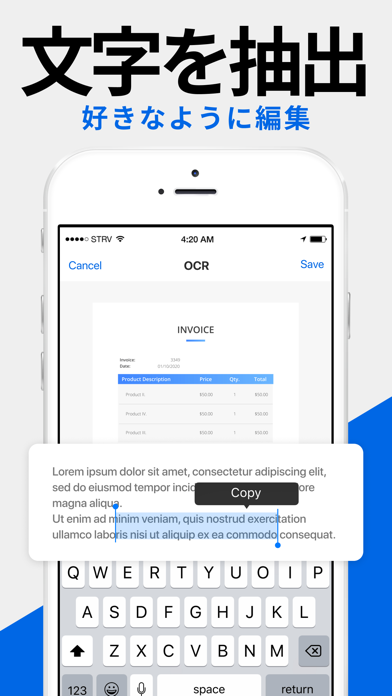 読み込んだ書類をPDFに変換できるスキャナーアプリ。読み込んだテキストを抽出したり、書類の切り抜きができたりと機能が多くあります。また書類同士を結合させてひとつにまとめることも可能。書類でのコミュニケーションがスムーズに進められるでしょう。