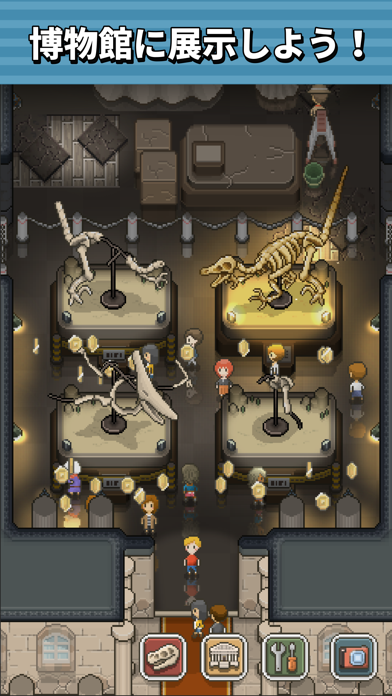 懐かしい雰囲気のドット絵が可愛いのでインストールしてみました。化石を発掘して博物館に寄贈、展示を繰り返す簡単で分かりやすいゲームシステムなのでつい時間を忘れてプレイしております(*´v`*)コインが自動で貯まり、毎日少しずつ進められるので空き時間などにぜひおすすめです。