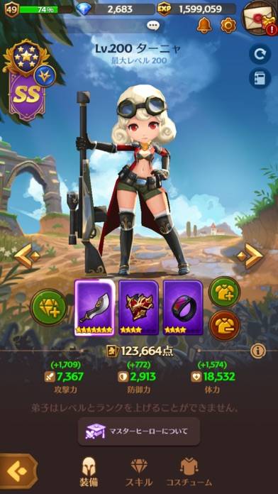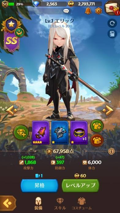 ▲ホーム画面ではスキルアップや装備などの強化が行える。キャラクターをタップするとボイスも聴けるぞ。