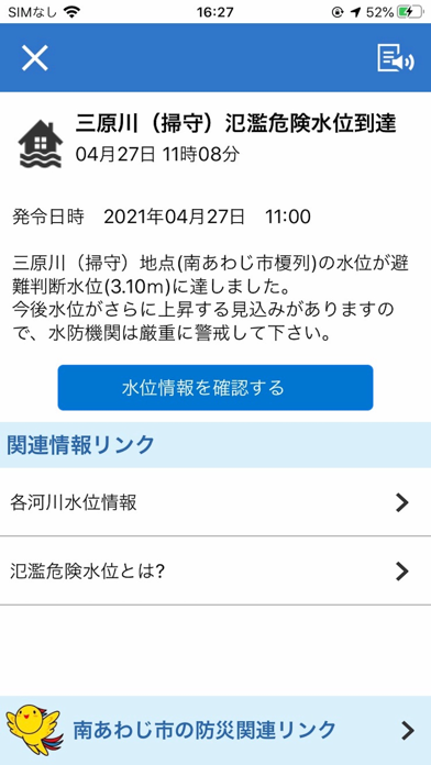 避難指示などが発令されたとき、このアプリですぐに速報を受け取れます。どのような警報が出ているかリアルタイムで把握。事前に用意できる避難カードや防災関連のリンクへの移動もスムーズです。