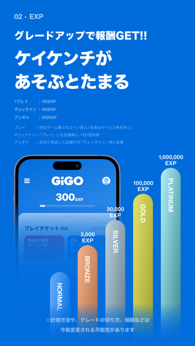 - 来店やゲームプレイを重ね、会員のグレードをアップして特典をGET
