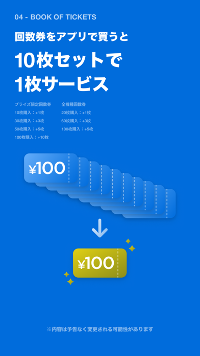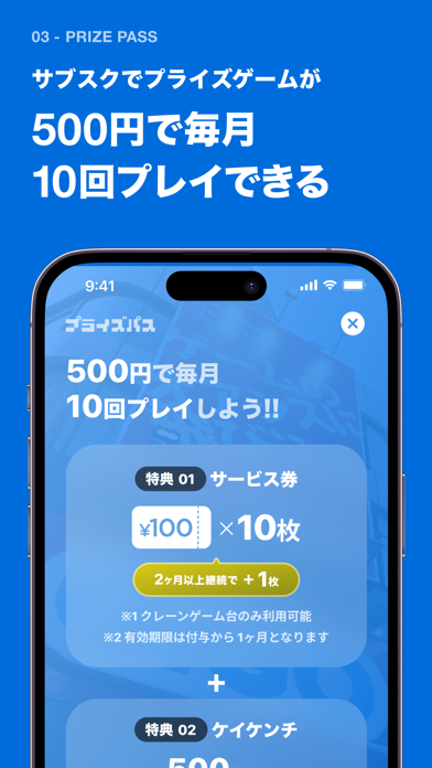 SEGAの各店舗で使える回数券の購入や、無料クーポンの獲得ができます。他にも月額制で毎月一定回数プレイできるプライズパスなど、クーポンの種類はさまざま。クーポンは電子マネー決済端末・シンカターミナルが設置されたゲーム機で利用できます。