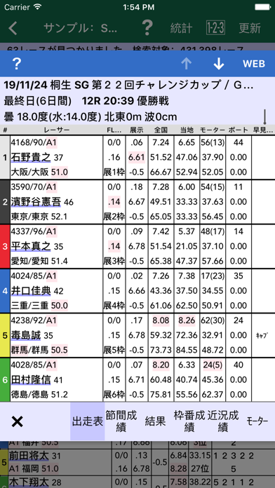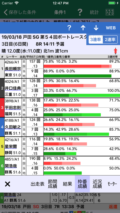 競艇の膨大なデータが本アプリに収録されています。レースのリアルタイムの情報更新のみならず、2012年以降のレースデータを収録。