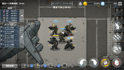 ▲戦闘員4名とドローンを編成して戦場へ。ストーリー進行で戦闘員は増えていく。