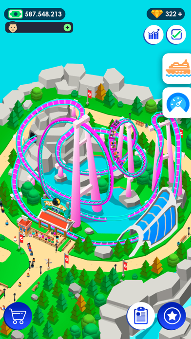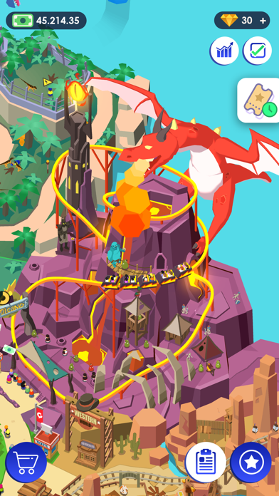 遊園地をグレードアップさせていくシミュレーションゲームです。放置していてもお金が貯まりやすい。貯まったお金でジェットコースターなどのアトラクションのランクをあげていったり、ショップなどを充実させる楽しみがあります。人が集まってくる様子をみているだけでも楽しめます。
