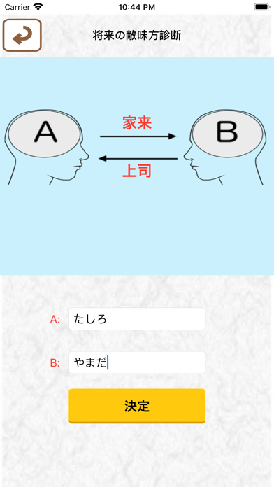 - 操作は名前の入力やタップのみでOK。ちょっとした暇つぶしにぴったり