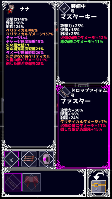 ▲装備できる武器やアイテムの設定が細かい。同じ名前でも細かい部分が変わり操作性が変化するものも。お気に入りを見つけよう。