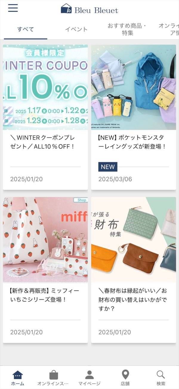 - 新着や期間限定などの情報が豊富。Bleu Bleuet公式アプリ
