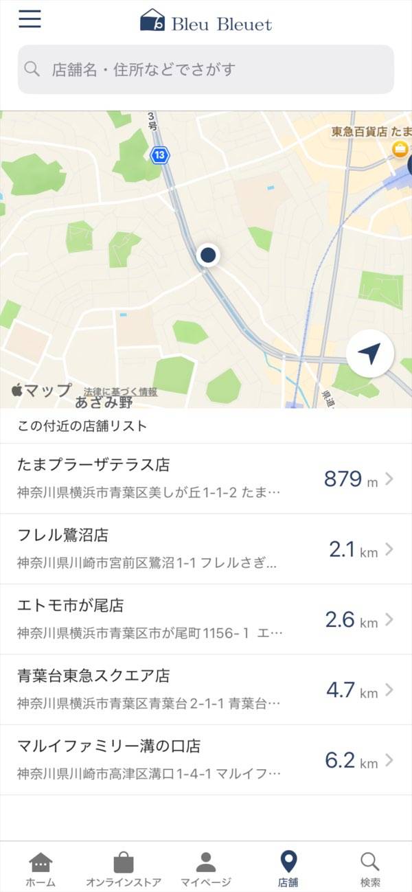 - 最寄りの店舗情報を掲載。マップから近くのお店を探せる