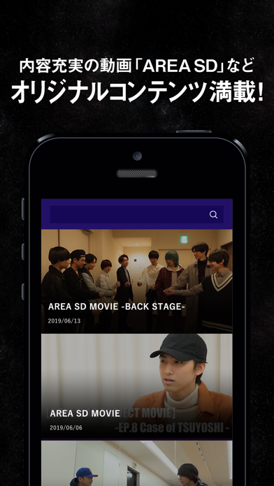 SUPER DRAGONのライブやイベントの最新情報はもちろん、会員限定の動画「AREA SD」などオリジナルコンテンツが満載の公式アプリ。ポイント機能を搭載しており、貯まったポイントに応じてオフショット動画が見られちゃいますよ。