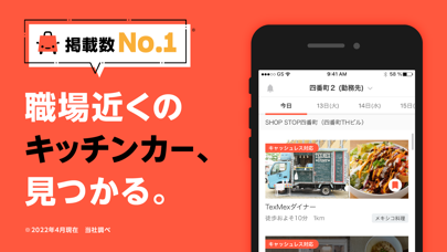 時間限定の美味しさをとことん満喫。現在地周辺で展開しているキッチンカーの場所を、地図で確認できるアプリです。店舗ごとのメニューや、1週間分の出店状況も確認可能。