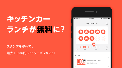 キッチンカーの店頭に掲示しているQRコードを読み取ることでスタンプを獲得でき、スタンプ数に応じて割引クーポンを取得できます。