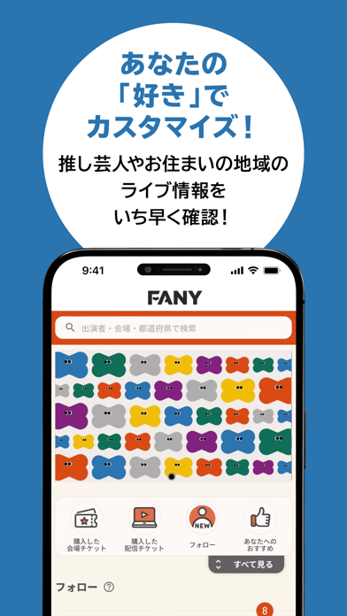アプリから公演チケットを購入。好きな劇場やタレントを登録しておけば、その劇場やタレントの公演情報がすぐにわかります。購入したチケットはアプリ内で一元管理でき便利。ライブ配信のチケットも購入できます。