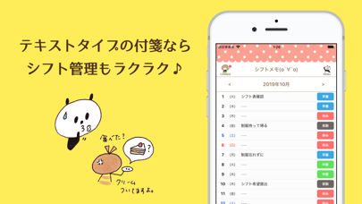 各日付に5色のスタンプ(付箋)を貼れる機能により、シフトの色分けや重要度の区別が一目瞭然。イチゴやスイカなどのかわいいデザインで、実用性と楽しさを両立しています。メモ機能では日記や買い物リスト、忘備録としても活用可能です。