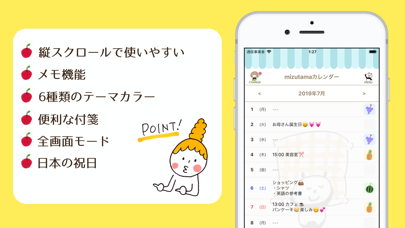 - 日付ごとにメモや付箋がつけられる、縦スクロール型カレンダー