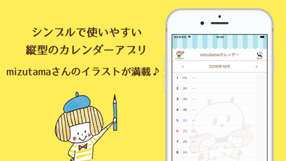 アプリ内にはmizutamaさんのイラストが盛りだくさん。カレンダーの背景にも多彩なイラストを用意しています。