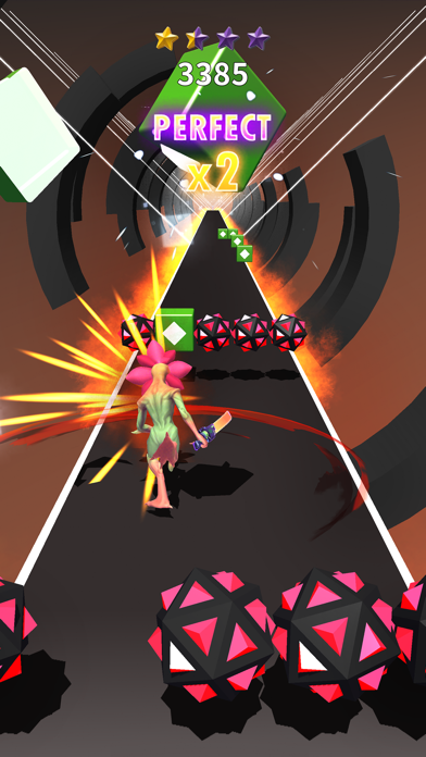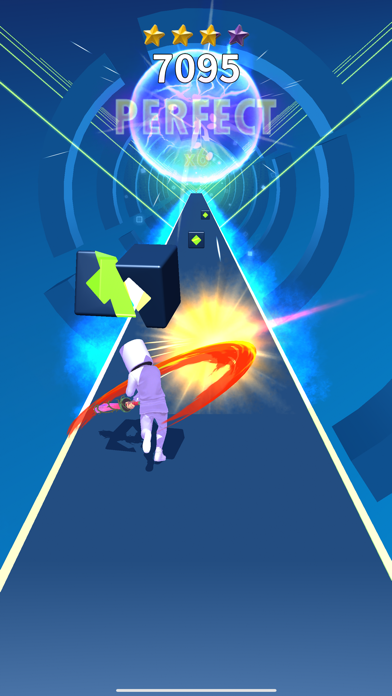 Marshmelloの曲を聴きながら遊べる音ゲーアプリ。Marshmello好きはもちろん、EDMやダンスミュージックが好きな人にもおすすめです。ゲーム内でパーフェクトコンボが続くと、キャラの足元にあるゲージがMAXになり、流れてくるノーツがコインに変わります。