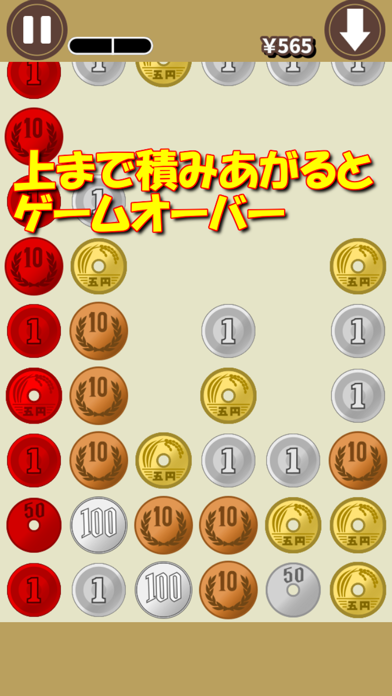 ちょっとした計算を使うシンプルなパズル。天井まで達するとゲームオーバーなので、硬貨の積み方にも気を使いながら進めていきます。軽い脳トレにもなり、ふとした時に遊びたくなるアプリです。