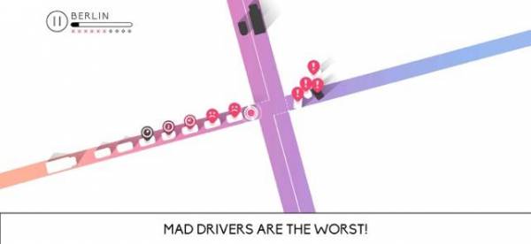 白い車をうまく合流させるためにゲートを操作していくゲームです。ステージごとに異なる合流地点になっており、一筋縄ではいかないのが魅力。タイミングを間違えると黒い車とぶつかってしまいます。