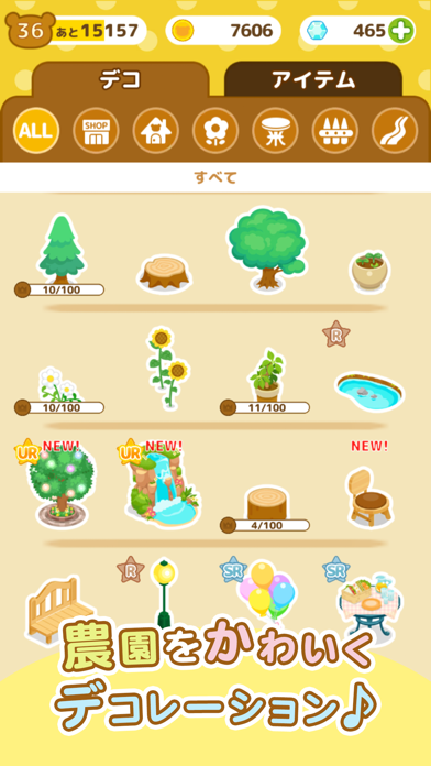 - デコ(置物)を自由に飾って、自分だけの農園が作れる