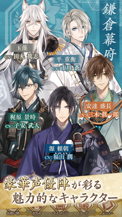 - 鎌倉時代が舞台。有名武将やあやかし達と恋愛が楽しめるアドベンチャー
