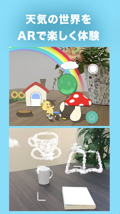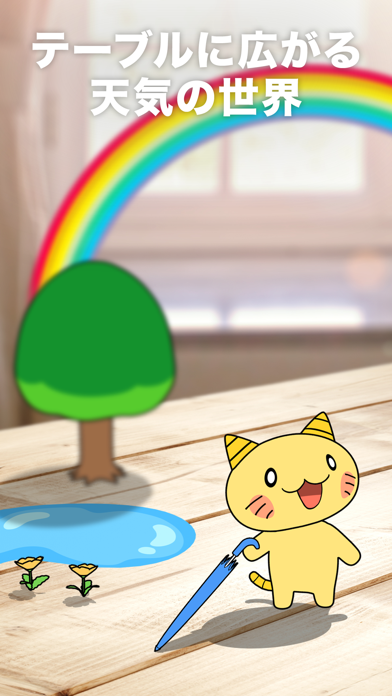 - AR機能で”てんのすけ”が、テーブルやベッドの上を駆け回る天気アプリ