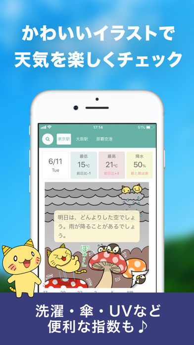 まるで絵本のようなデザインなので、子供から大人まで利用しやすいでしょう。天気予報だけではなく、紫外線や湿度の情報までわかるのがうれしいポイント。あなたの生活をサポートしてくれます。