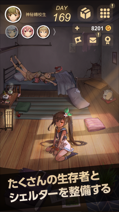 アプリ内のキャラクターはお腹が空いたり喉が渇いたりします。キャラクターの満腹度・水分量・精神力を維持するためには、”探索”に参加しアイテムを入手しなければなりません。ゲームでありながらちょっとしたサバイバル感覚を味わえるのも魅力的です。