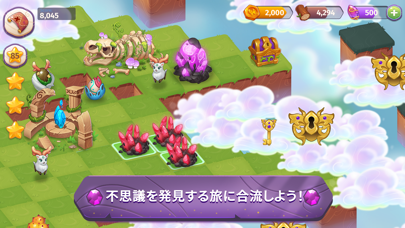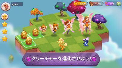 同じオブジェクトを3つ以上マッチさせるとマージ(合成)し、より上位のオブジェクトを作成。各ステージごとに指定された条件をクリアすると次のステージに進めます。