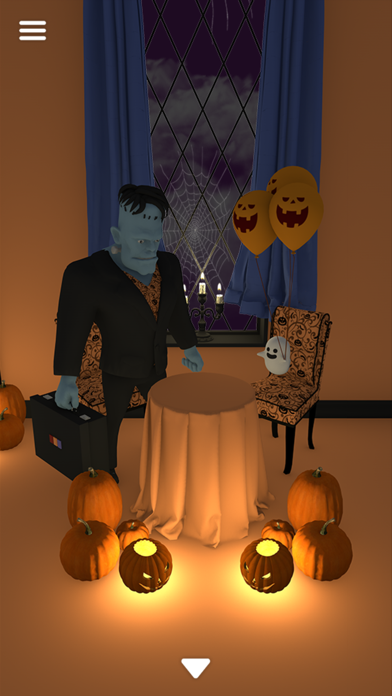 ハロウィンがテーマの脱出ゲーム。部屋にはお墓やかぼちゃのランタン、おばけの置物が所狭しと並んでおり、ホラーながらもにぎやかな雰囲気。置物をタップすると笑い声を上げたり、窓の外で突然雷が落ちたりと、音楽もいっそう空気を引き立てます。