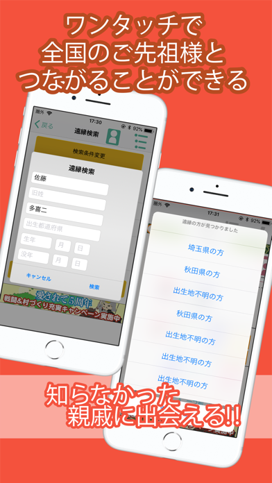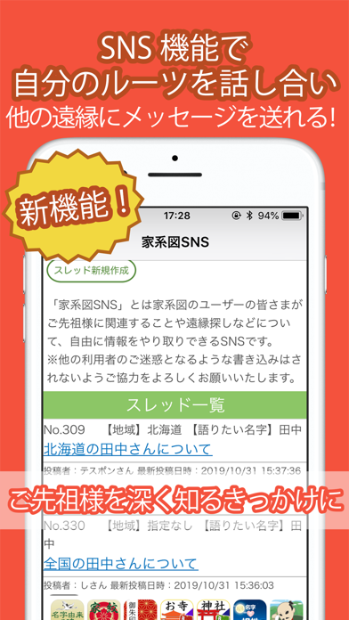- 有料プランで、遠縁の人とつながるSNSや、古文書の検索機能が開放