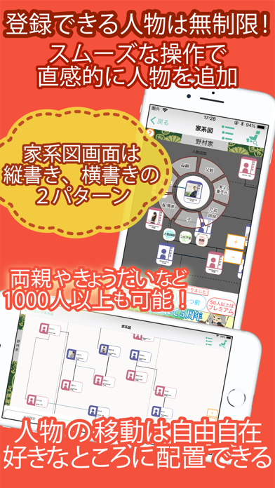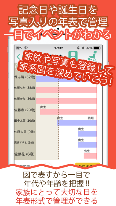 - 家族や先祖の家系図を作れるアプリ。一人ひとりの情報を詳細に残せる