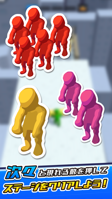 画面をドラッグして緑色のキャラを移動。敵はプレイヤーの方にどんどん向かってくるので、持っているスティックで押し、奈落の底へと落としてやりましょう。