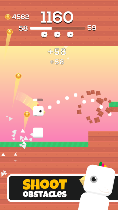 - キューブ型の鳥をタップすると背が高くなる。障害物を乗り越えよう