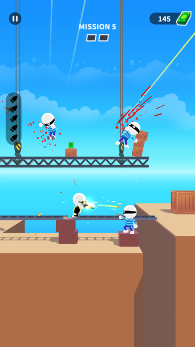 赤いレーザーサイトが敵に当たっている瞬間に画面をタップすると攻撃成功。一瞬にして多数の相手を倒す、凄腕エージェントのような動きができてスリル満点! ステージにいるすべての敵を倒すとクリアになります。