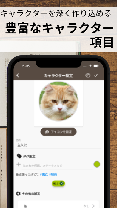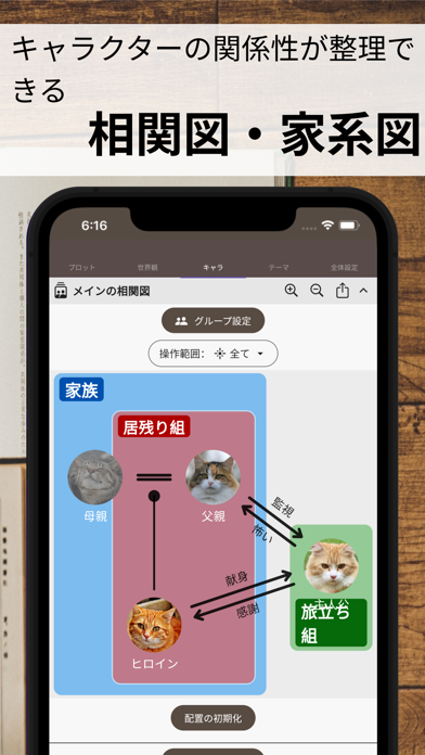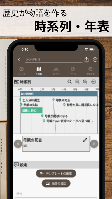 ネタ帳にはタグをつけられ、後で簡単に探し出せます。また思いついたアイディアは、相関図や時系列など専用の機能を使って整理可能です。