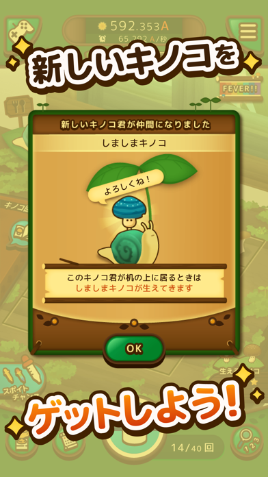 新しいキノコを解放するには溜まったエネルギーを使いましょう。高ランクのキノコを作りやすくなるので、エネルギーを何に使うか考えてみてください。どんなキノコに出会えるでしょうか。