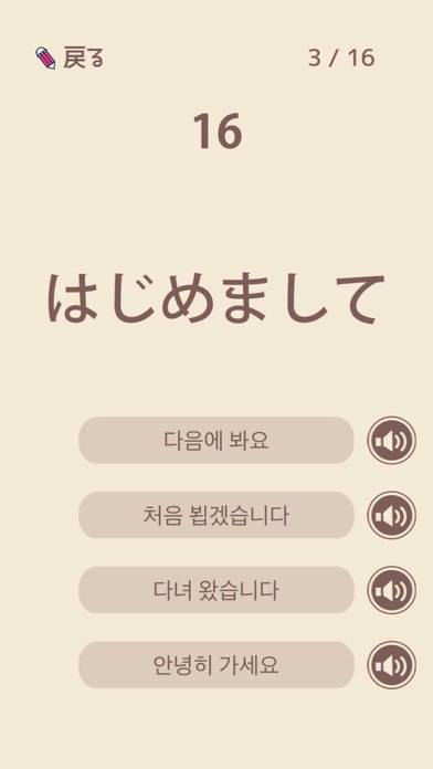 韓国語を学びたい人にピッタリのアプリ。挨拶などを含む基本的な単語を収録し、100回のレッスンに分けて学びます。勉強後には確認テストがあり、テストの点数で成長を実感できます。また、音声付きの単語学習により、発音やイントネーションも正確に習得可能。