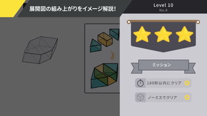 ▲ミスするとヒントが見られるようになる。展開図の一部だけ、図形を組み立ててくれるぞ。