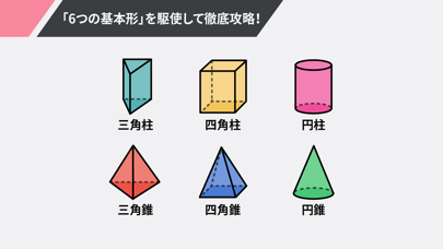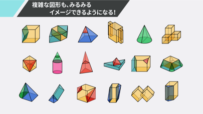 どの図形同士を組み合わせれば正解の図形を作れるかわかる学習アプリ。一風変わった形式のクイズで楽しく進められ、頭の中で2つのプロセスを考えるので、立体をイメージする力を伸ばせるでしょう。正解した後は展開図を組み立てるアニメーションが見られます。
