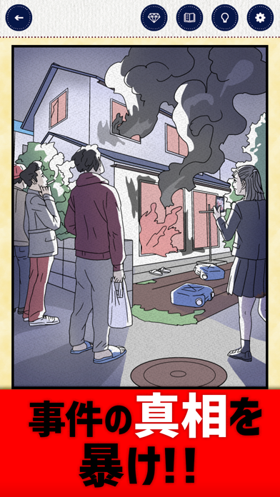 - イラストをタップして手がかりを発見、事件を解決する推理ゲーム