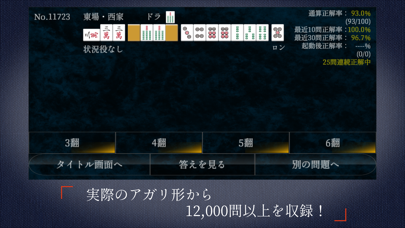 - 麻雀の点数計算を、翻数と符から勉強できる12,000問以上を収録
