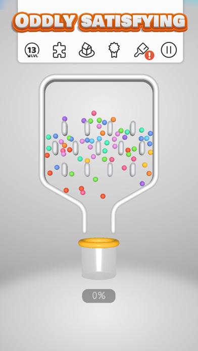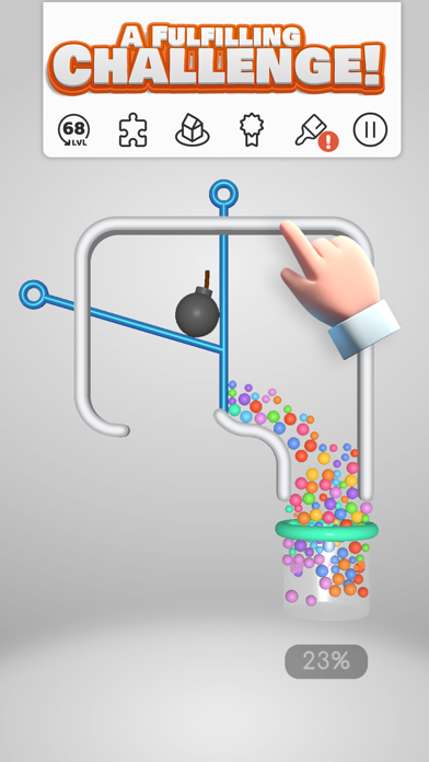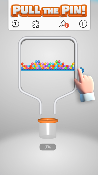 ピンを抜いてボールをゴールに導くパズル。道中にある透明なボールは、色のついたボールに触れるとカラフルに彩られます。透明なボールもあわせて、すべてのボールをゴールに持っていきましょう。