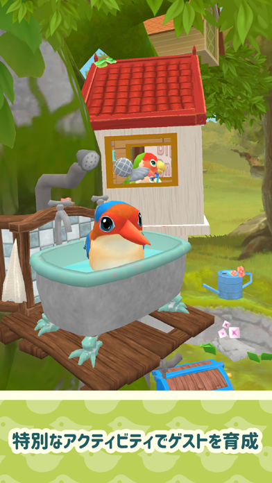 ガイドのペッパー&マンゴーと一緒に「バードホテル」を経営。やってくる鳥たちにホワイトベリーのご飯を与えたり、バードバス(お風呂)に入れたり様々な要望に応えていきましょう。