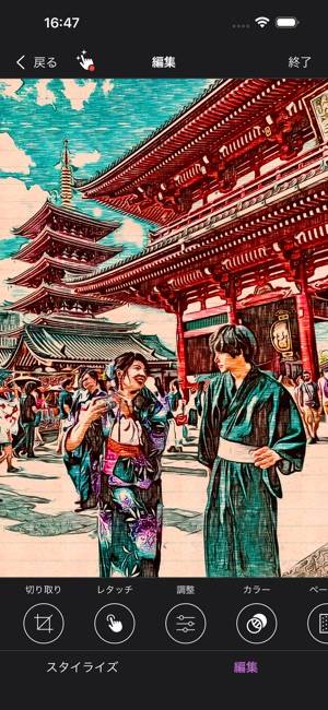 写真や動画をタップひとつで線画やイラスト調にできる加工アプリ。パステル風やチャコール画など、アート風のフィルターもたくさんそろっています。旅先やイベントの思い出写真が、SNSで映える作品に生まれ変わりますよ。