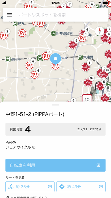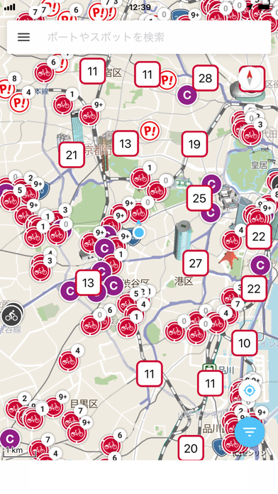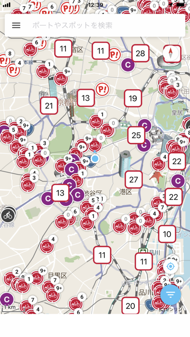 - シェアサイクルのポートや、貸出可能な台数を地図上で見られるアプリ