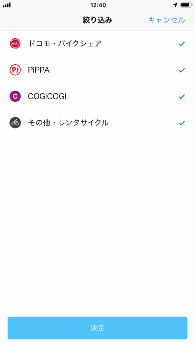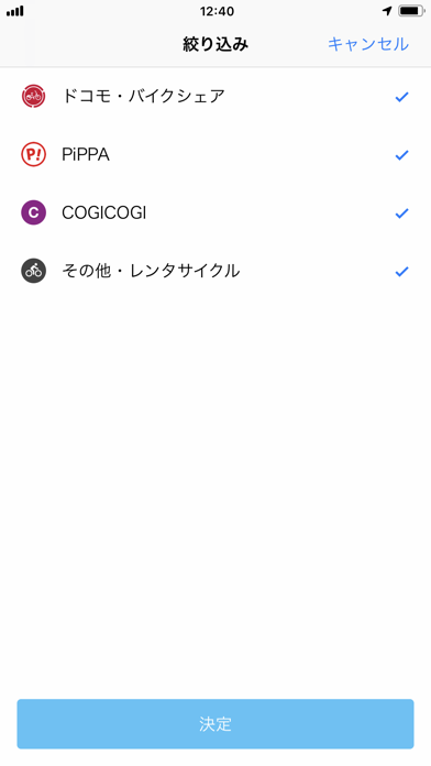 ▲バイクシェア、COGICOGIなど業者は絞り込みが可能。希望のポートを見つけたらすぐに予約できる。