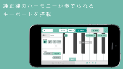 ▲純正律は自然7度に対応。最適なハーモニーの練習をサポートしてくれる。